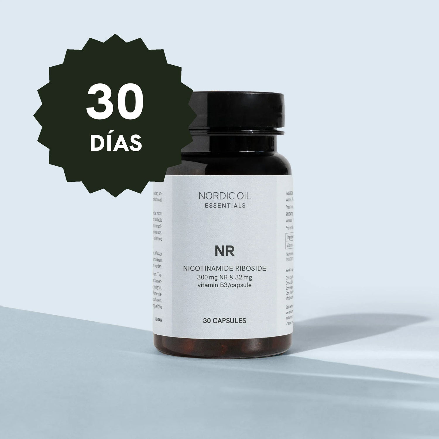 Las cápsulas de nicotinamida ribósido (NR) de Nordic Oil aportan 300 mg de NR y 32 mg de Vitamina B3 por cápsula, ofreciendo un enfoque limpio y respaldado por la investigación para la vitalidad diaria.