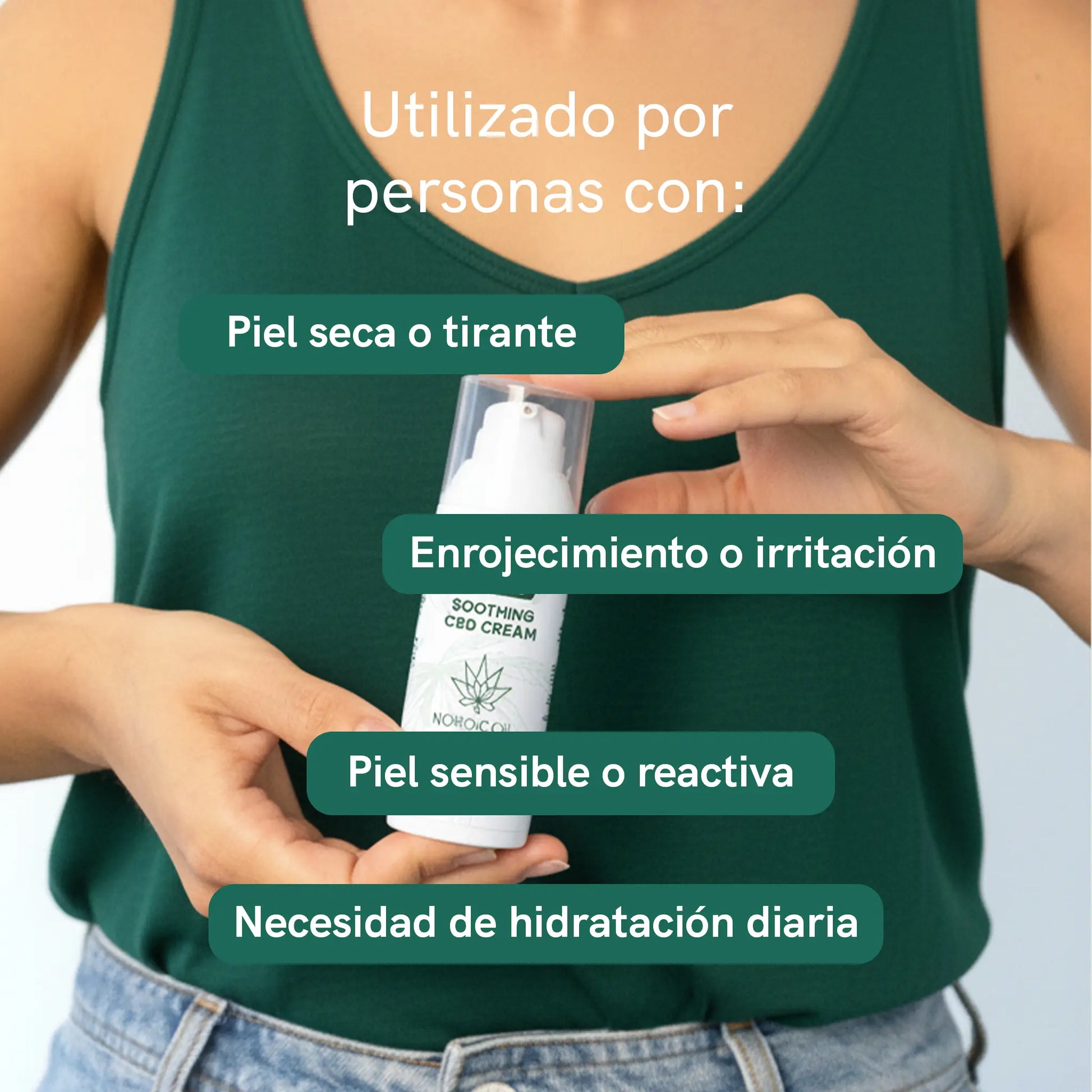 • Con 250 mg de CBD y avena coloidal para cuidar la piel seca y sensible