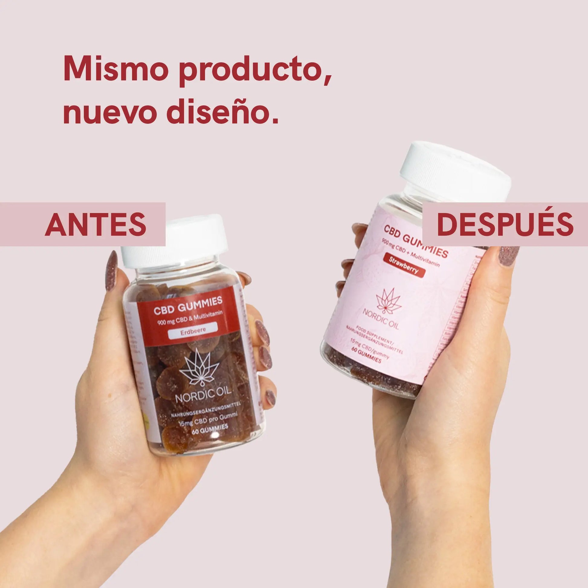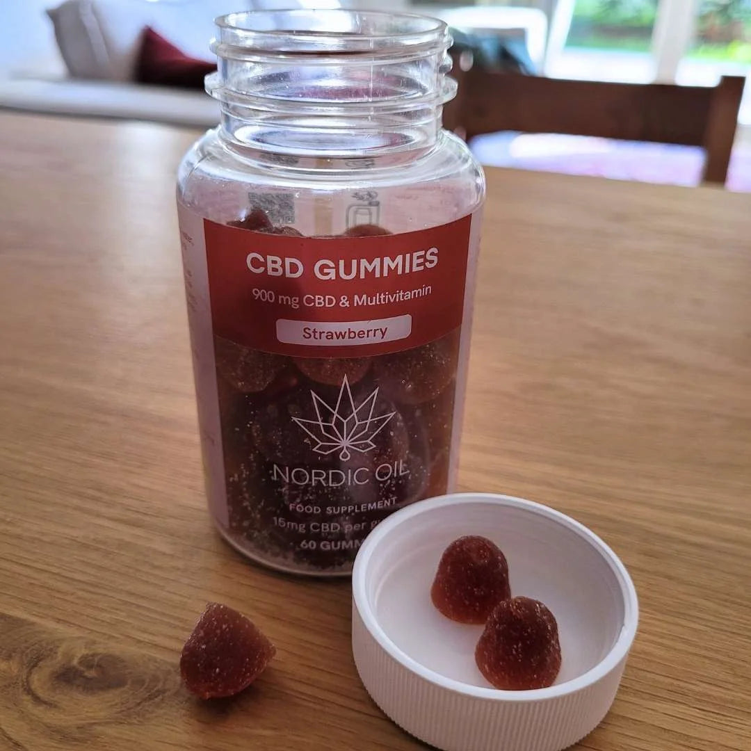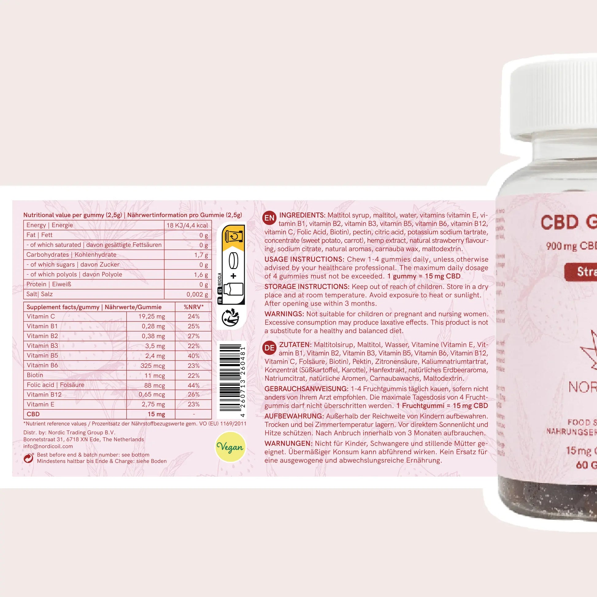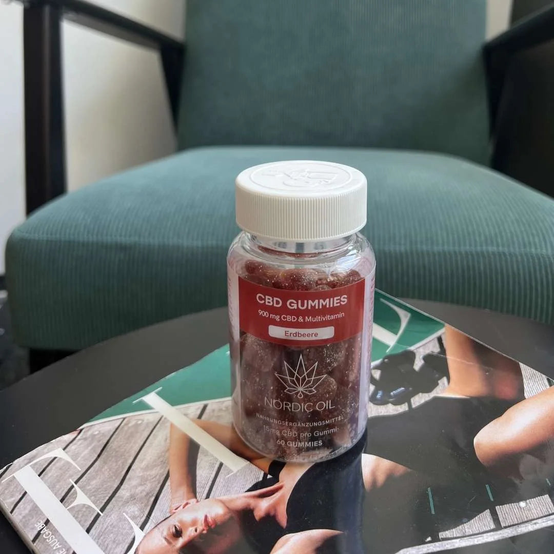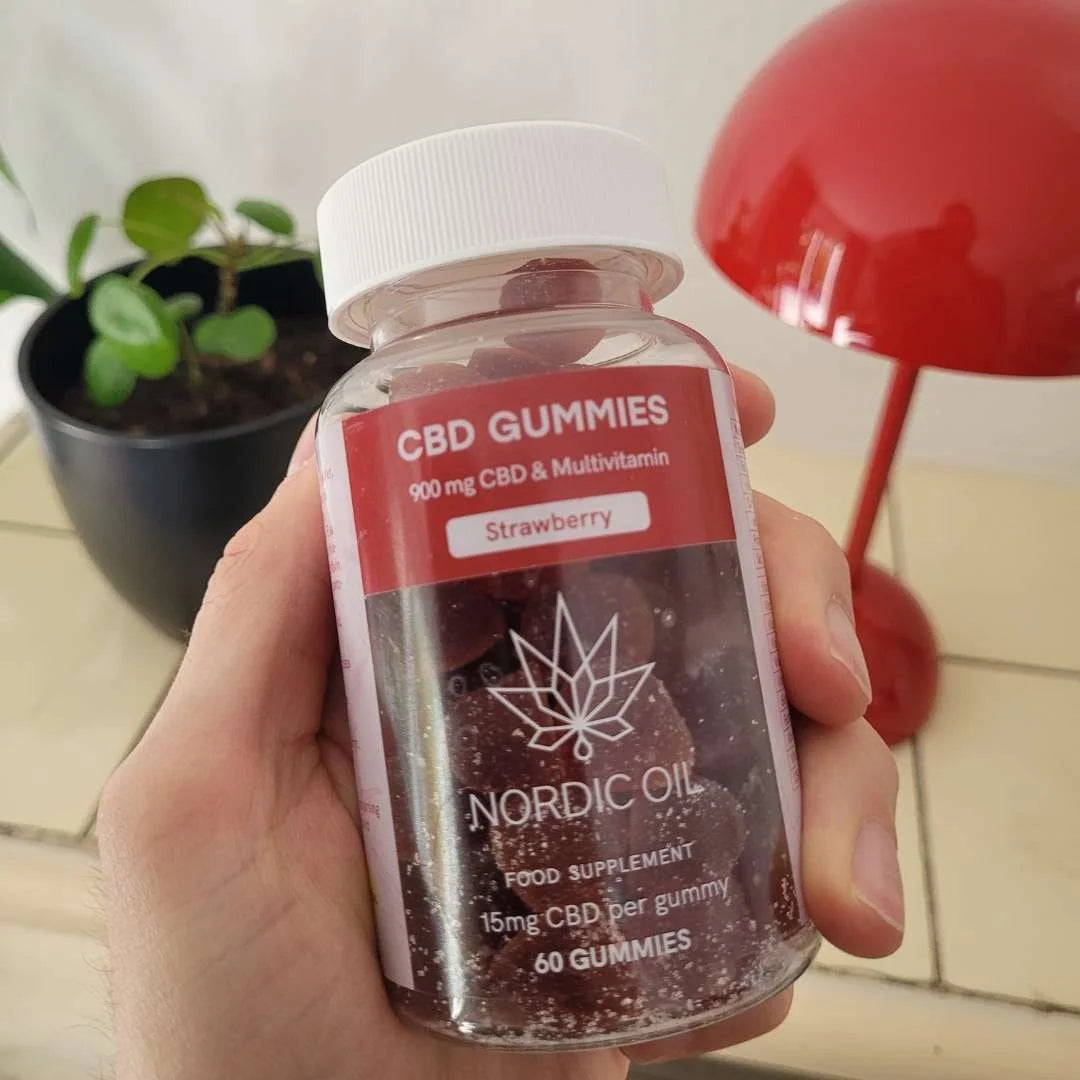 Deliciosas, prácticas y llenas de nutrientes: Las gominolas de CBD de Nordic Oil son la combinación ideal de extracto de cáñamo de alta calidad y nueve vitaminas esenciales. Cada gominola contiene 15 mg de CBD, lo que equivale aproximadamente a 2,5 gotas de aceite de CBD al 15%. Con su sabor afrutado a fresa, acompañado de un ligero toque de vitaminas, las gominolas de CBD convierten la ingesta diaria de CBD en un verdadero placer.