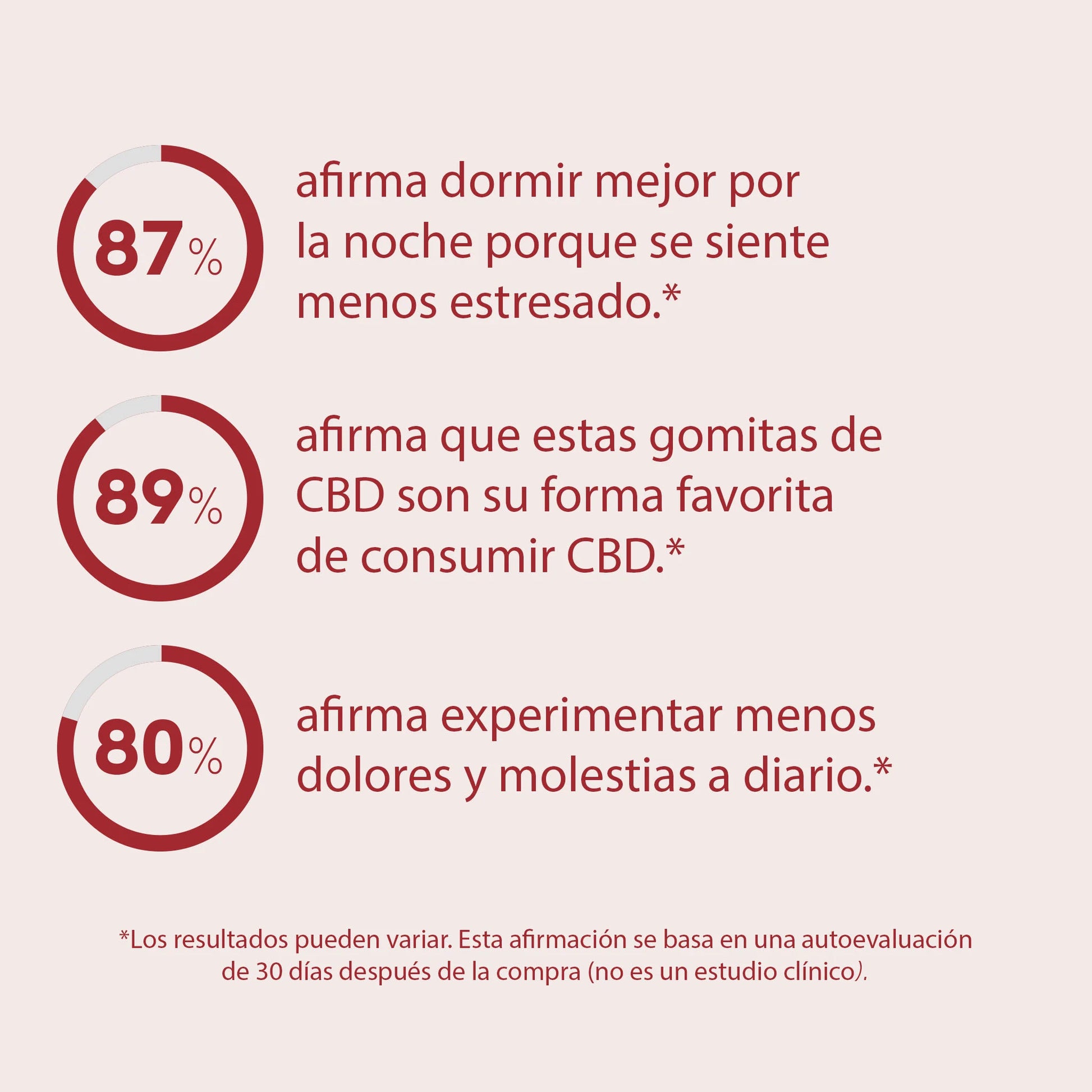 Mastique de 1 a 4 gominolas diarias, a menos que su médico le indique lo contrario. No debe excederse la dosis máxima diaria de 4 gominolas. 1 gominola = 15 mg de CBD