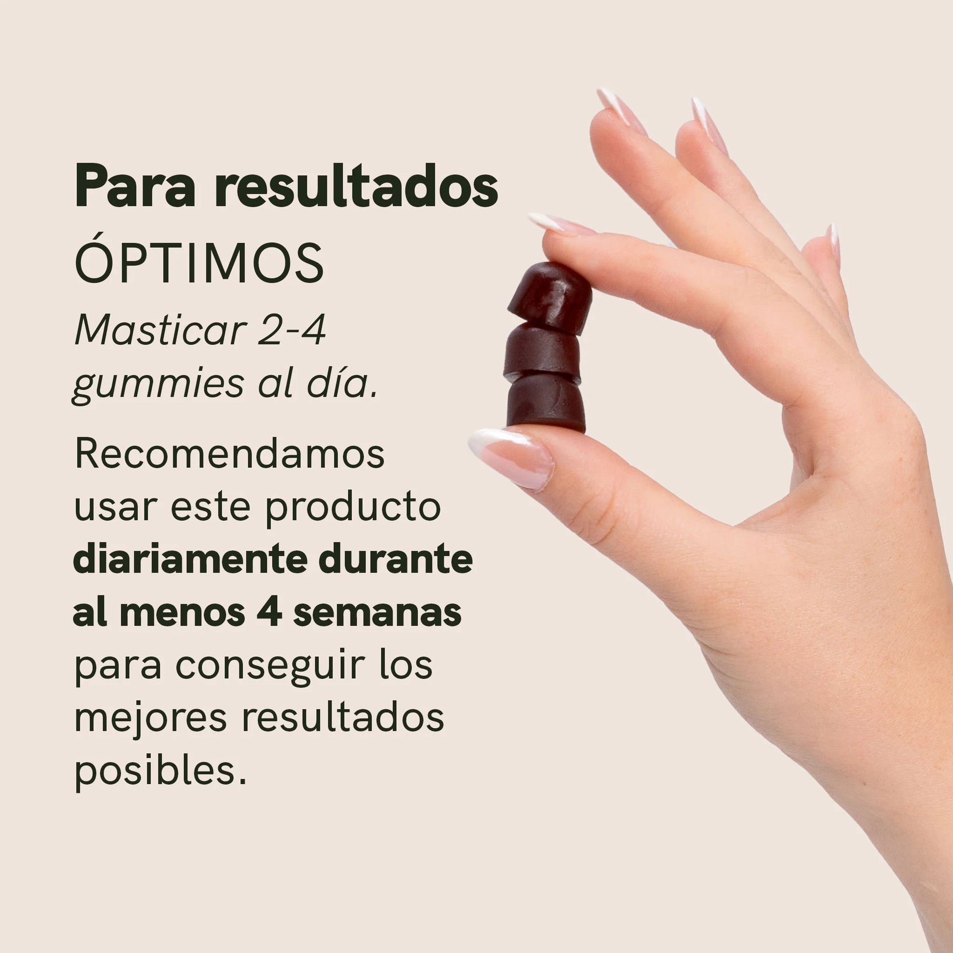 Masticar 2–4 gominolas al día, salvo el médico indique lo contrario. No superar la dosis diaria recomendada. Para obtener resultados óptimos, recomendamos tomar las gominolas a diario durante al menos cuatro semanas.